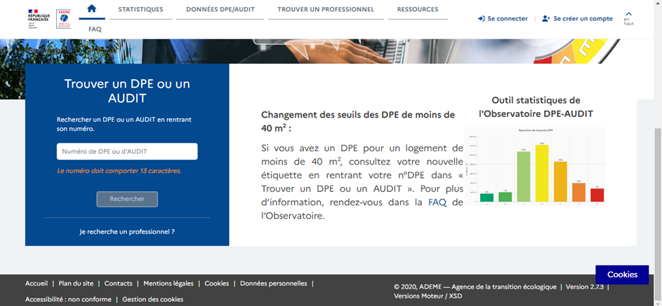 Il suffit de vous rendre sur le site https://observatoire-dpe-audit.ademe.fr/accueil et de saisir le numéro (13 caractères) du DPE ou de l’audit énergétique si un audit a été réalisé.